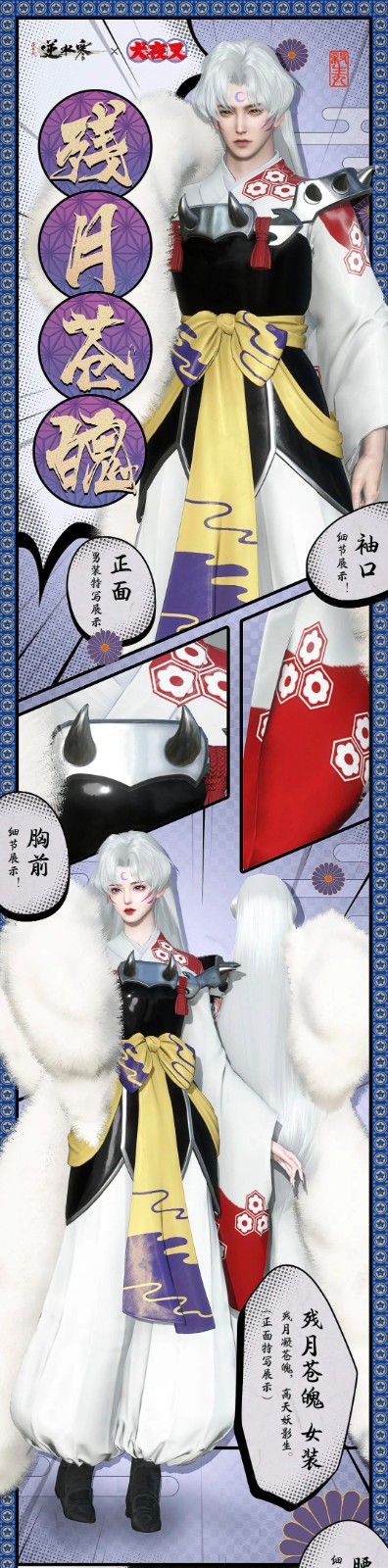 這么好看的時(shí)裝,當(dāng)然也要讓諸位女俠穿上!女款同樣還原了殺生丸經(jīng)典服飾的優(yōu)雅高貴,想來(lái)師姐、師妹們穿上之后,必定清秀俊逸之余,不失風(fēng)流婉轉(zhuǎn)。