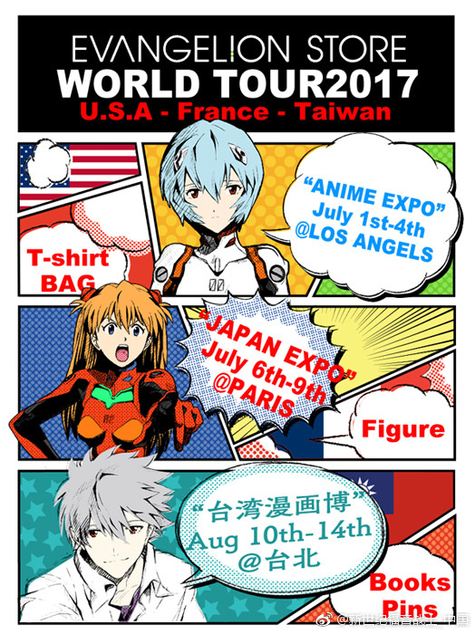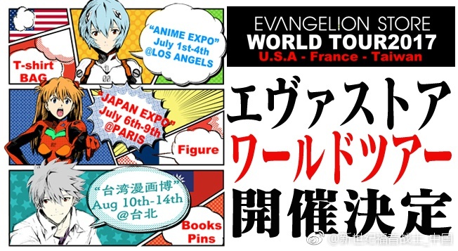 官方商店“新世紀(jì)福音戰(zhàn)士商店”開展世界巡回!! 從美國洛杉磯出發(fā)、巡回法國、臺(tái)灣地區(qū)!將會(huì)介紹東京池袋的“EVANGELION STORE TOKYO-01”、箱根的“え?ぁ屋”(EVA屋)以及官方商品的售賣。介紹EVA的魅力。