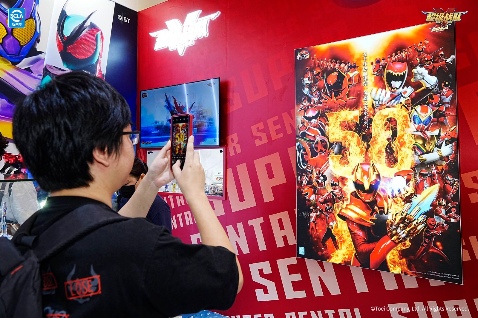 超級戰(zhàn)隊(duì)展區(qū)特別呈現(xiàn)超級戰(zhàn)隊(duì)50周年紀(jì)念視覺畫,并帶來了《蟲王戰(zhàn)隊(duì)超王者》、《爆燃戰(zhàn)隊(duì)奔奔者》等人氣作品的豐富周邊
