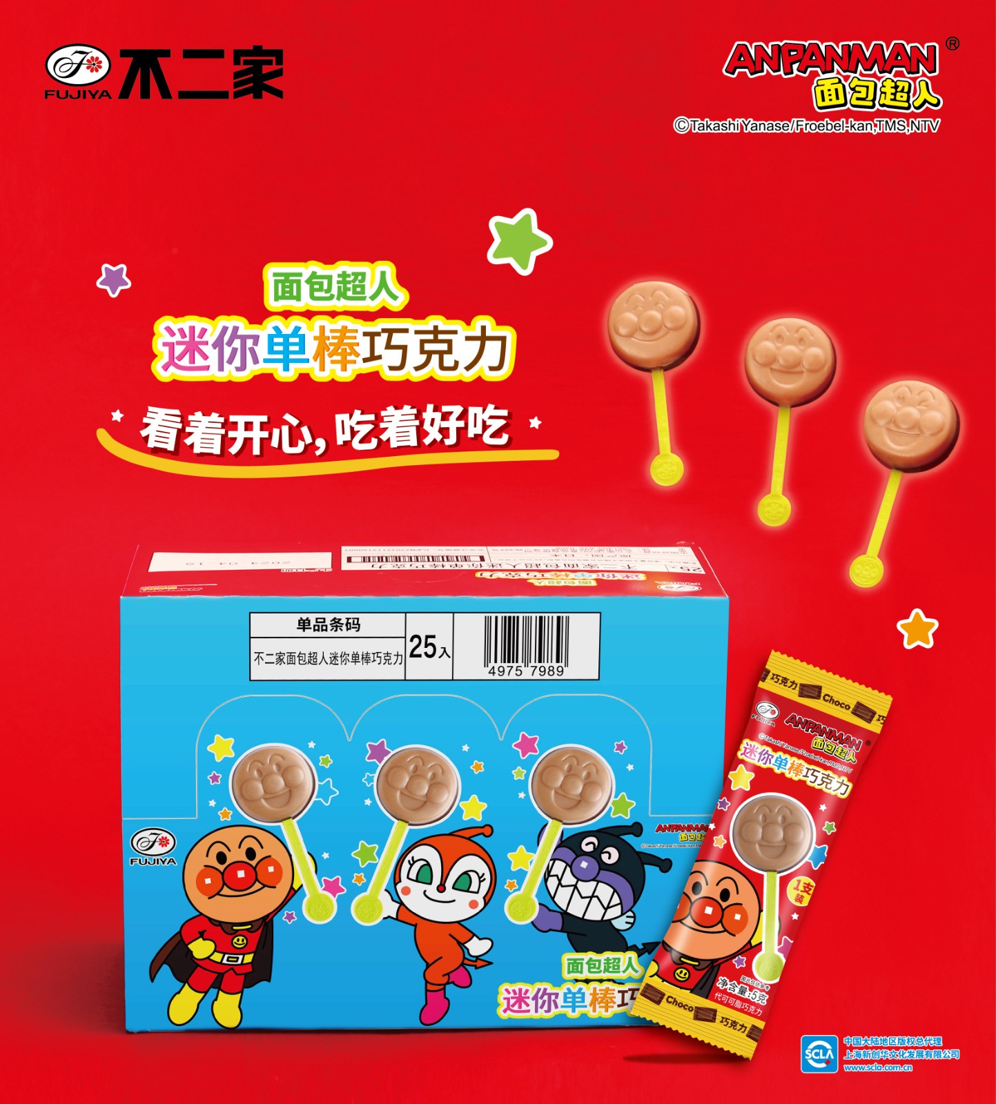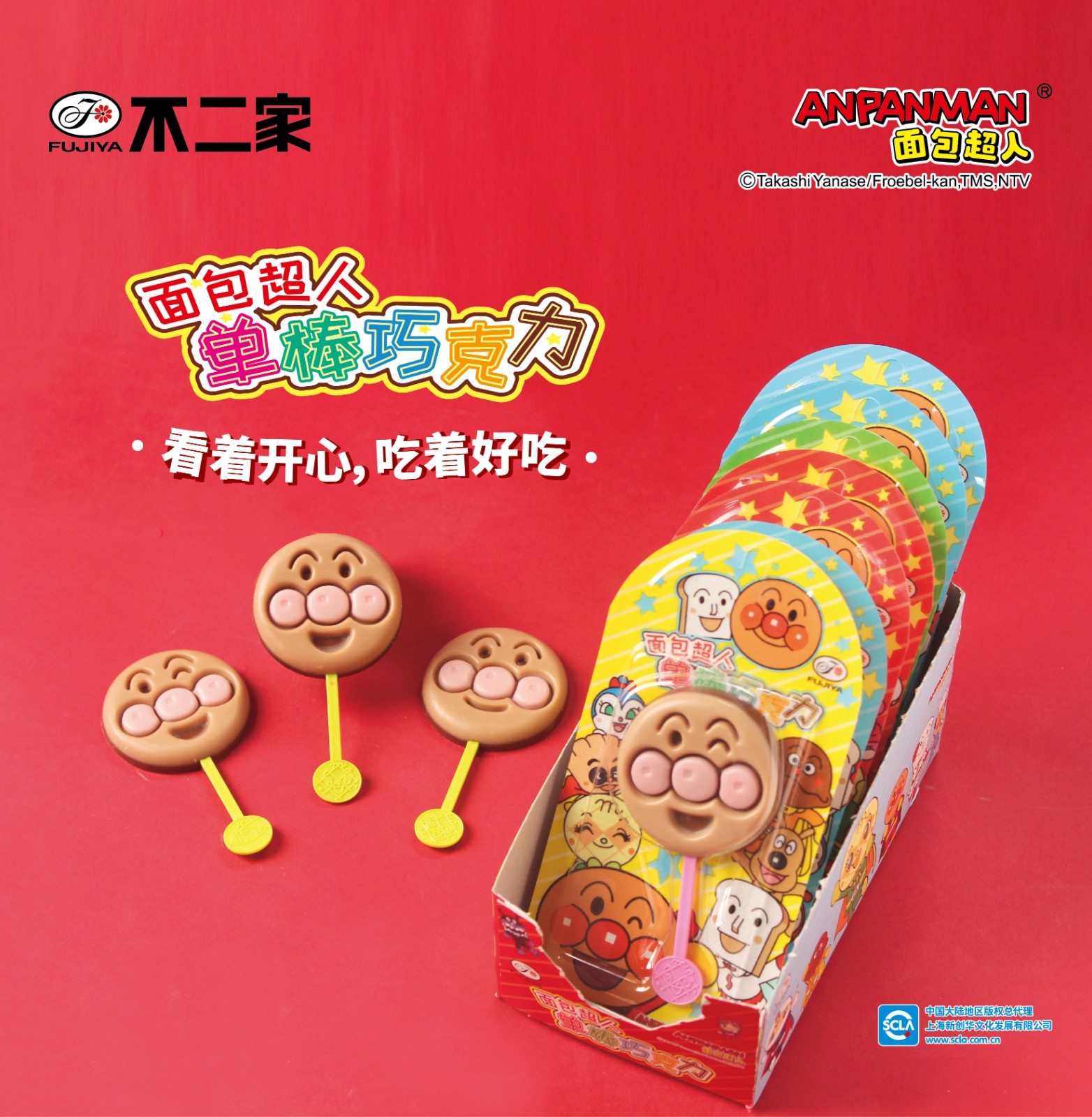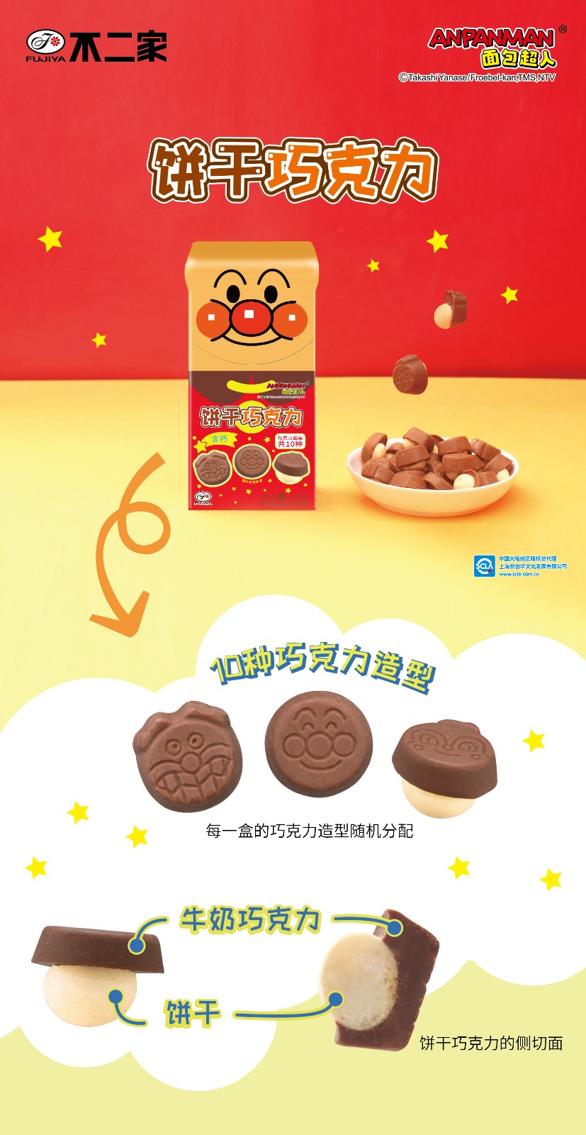 1??單棒巧克力:共有三款面包超人表情,背板還有六款可愛卡通形象和有趣問答,每一口都是濃郁的巧克力,好吃可愛又有趣!