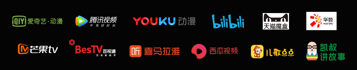 播出平臺(tái):優(yōu)酷、騰訊視頻、嗶哩嗶哩、愛(ài)奇藝、百視通、西瓜視頻、兒歌點(diǎn)點(diǎn)