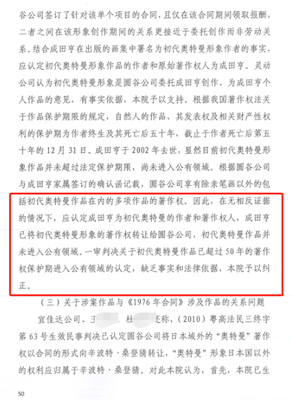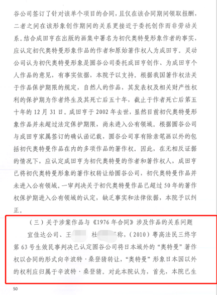 對于具有爭議的、疑似圓谷公司與辛波特?桑登猜簽署的所謂《1976年合同》,此次判決認為該合同僅涉及7部影視作品在日本國以外的獨占使用權(quán),圓谷公司并未轉(zhuǎn)讓相關(guān)影視作品及角色形象的著作權(quán)。即便如此,圓谷公司依然不認可所謂《1976年合同》的真實性。