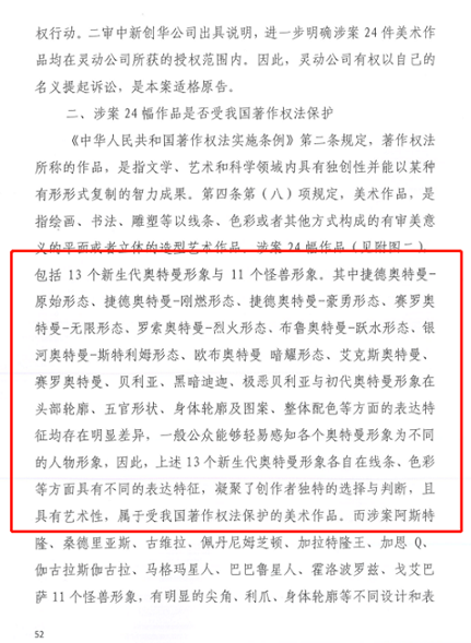 2、“新生代奧特曼”并非“初代奧特曼”的復制,具有獨創(chuàng)性,屬于受我國著作權(quán)法保護的美術(shù)作品;